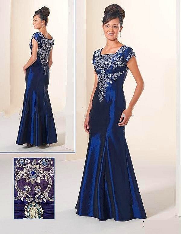100% Satin Short Sleeve Style Embroidery Sheath Prom Dresses |