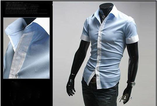 10/lotNew Mens Shirts Short Sleeves Slim Fit Stylish Dress Shirts Colour:Blue,White,Black US Size:XS,S,M |