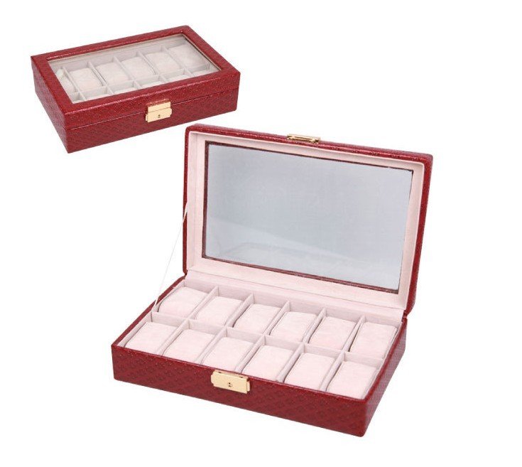 12 Positions Rectangular Shape Red Watch Box |