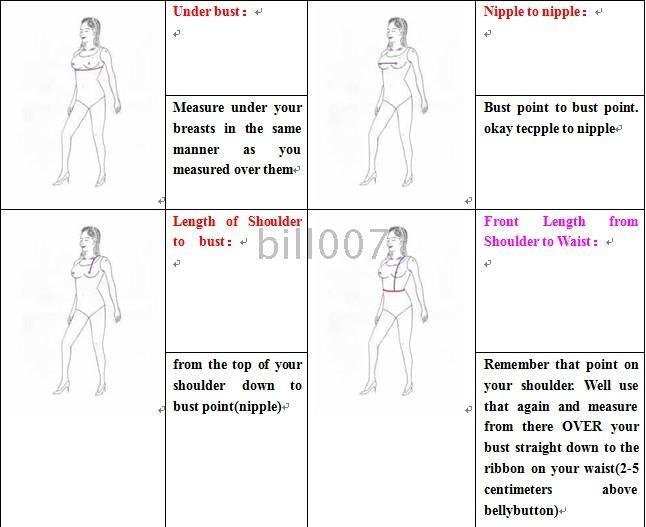 Please follow the measurement instructions, and measure yourself carefully. After you pay for me ,please tell me your exact measurement ( Bust .Waist .Hips .Shoulder to Waist .Outer Leg .Shoulder to Shoulder . Stature/Height ) in 24 hours ,so that you can receive the dress quickly !If you need any other color or special requirement, please contact me by email and I will take care of your request personally.