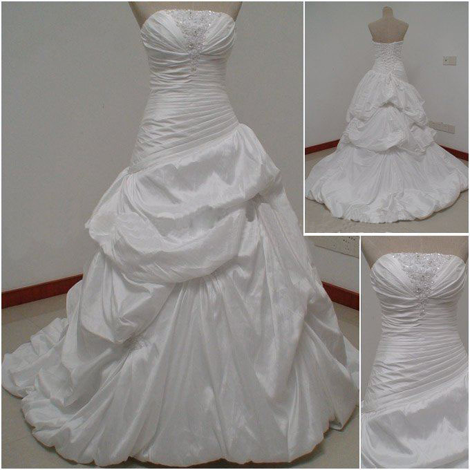 (1) Unique wedding dress sleeveless, empire waist, made of satin,,show a sense of elegance and glamour.
