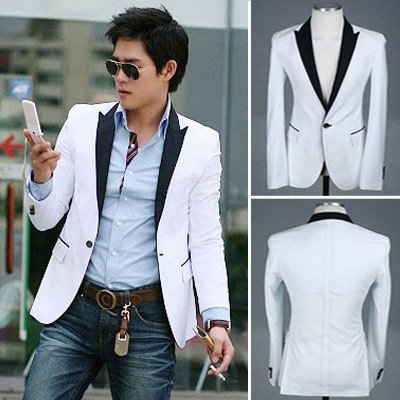 2011 CHIC One Button Black Collar Slim Suit White Color Size US S/M/L |