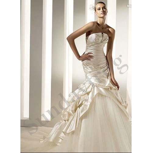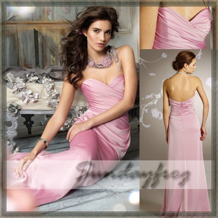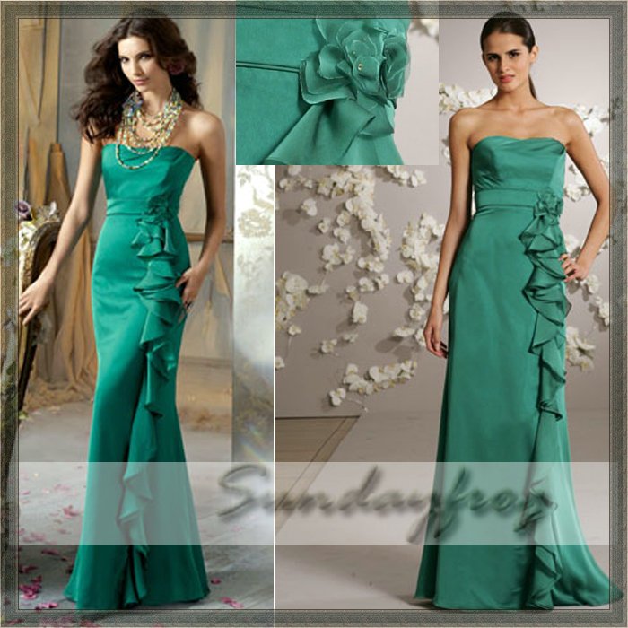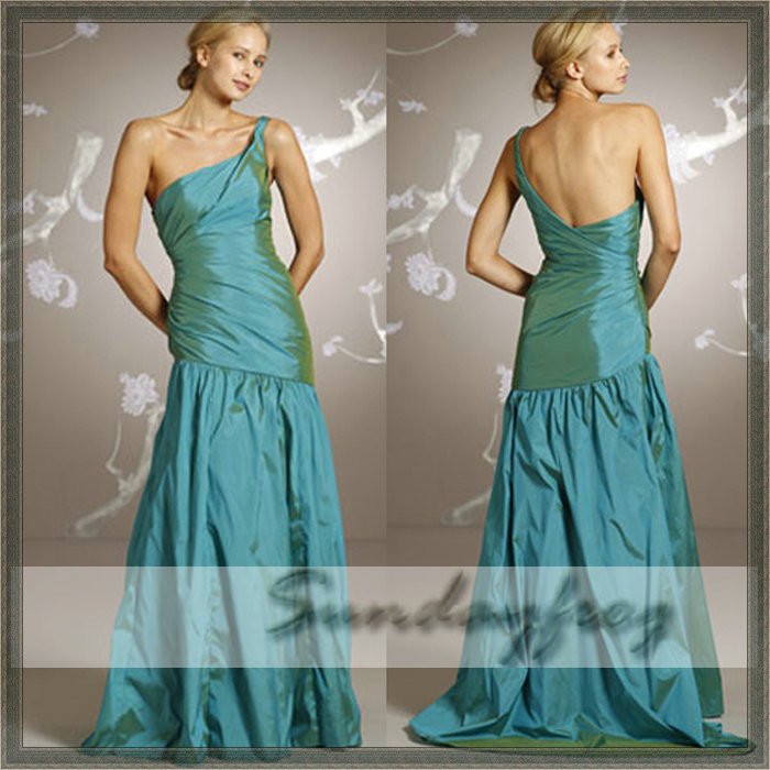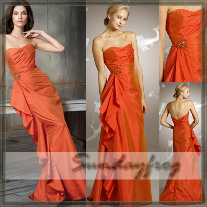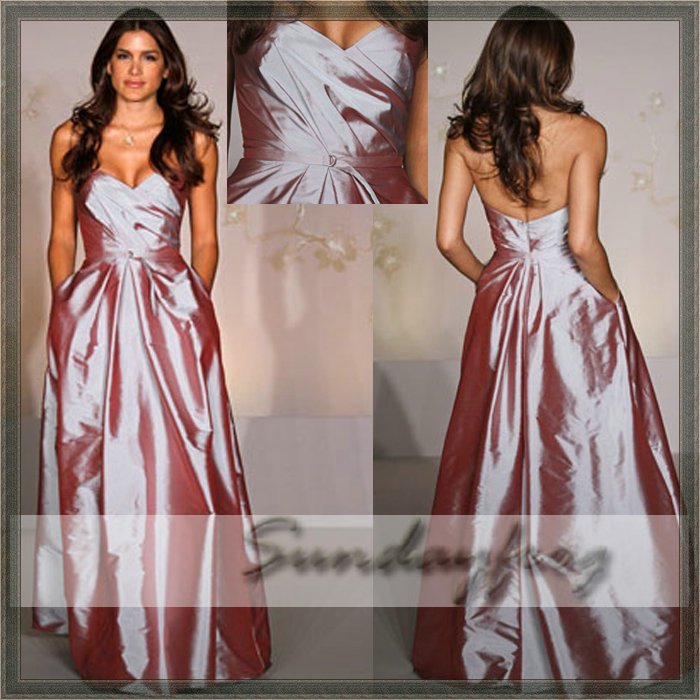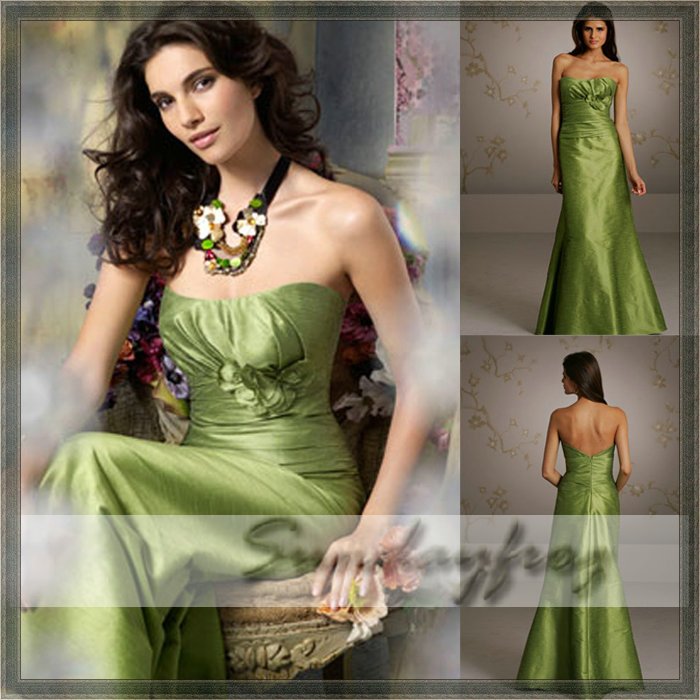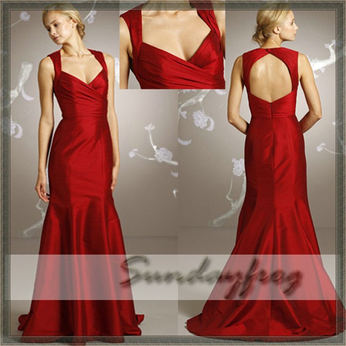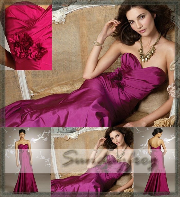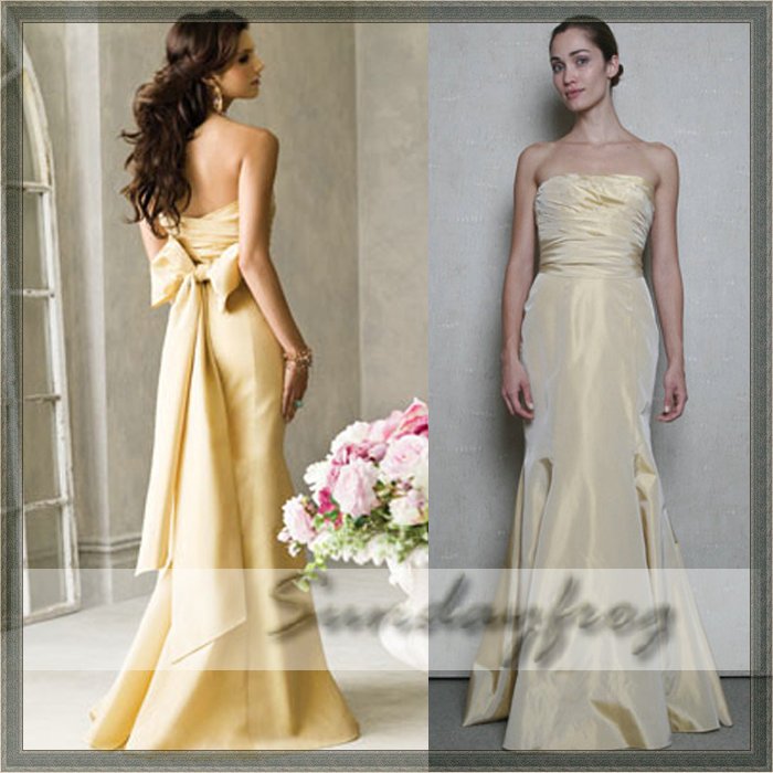 Free Shipping 2011 Custom Made Bridesmaid Dress Mermaid Taffeta Strapless Sash Butterfly Tie Back Wedding Party Dress Evening Dress -JH5823.