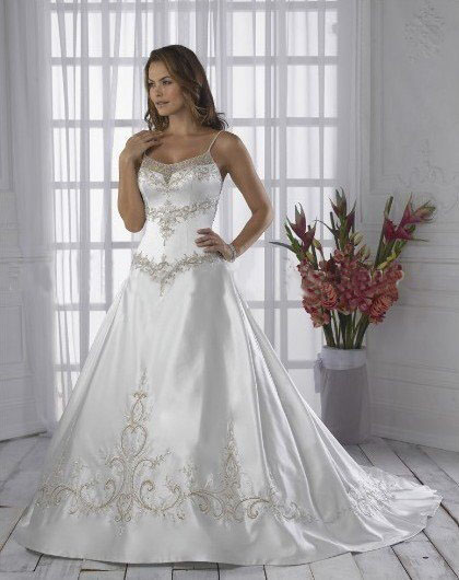 Use: Bride Place of Origin: Jiangsu China (Mainland) Decoration: Lace Feature: Anti-Static,Anti-Wrinkle,B... Brand Name: Brand new Hemline: Floor-Length Fabric Type: Satin Technics: Embroidered Design: Sleeveless Silhouette: A-Line Style: Modern Color: Custom color Material: 100% Polyester Model Number: 2278 Supply Type: OEM Service size: cutsom size