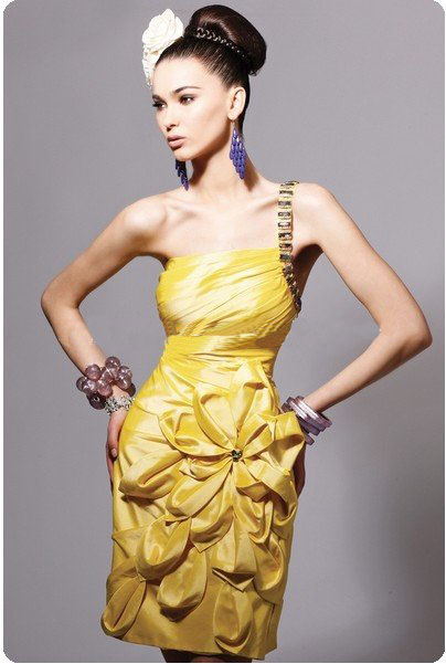 Name | 2011 Hot Elegant Yellow One Shoulder Short Dresses,Party Dresses, Cocktail Dresses with Big Crystals CCK019 |