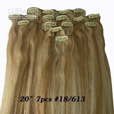 20inch 7pcs Clip In 100% Remy Human Hair Extension Brown/Blonde #18/613 5sets lot 70g/set 32" Wide Straight Freeshipping