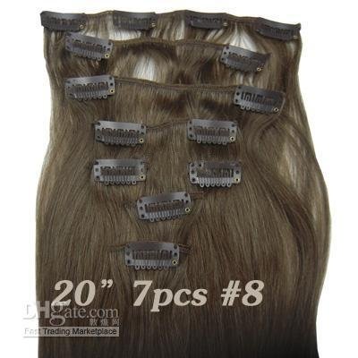 • 20" Clip In/on Hair Extension 100% Human Hair #2,7pcs,80g/set,5sets/lot,DHL Free Shipping