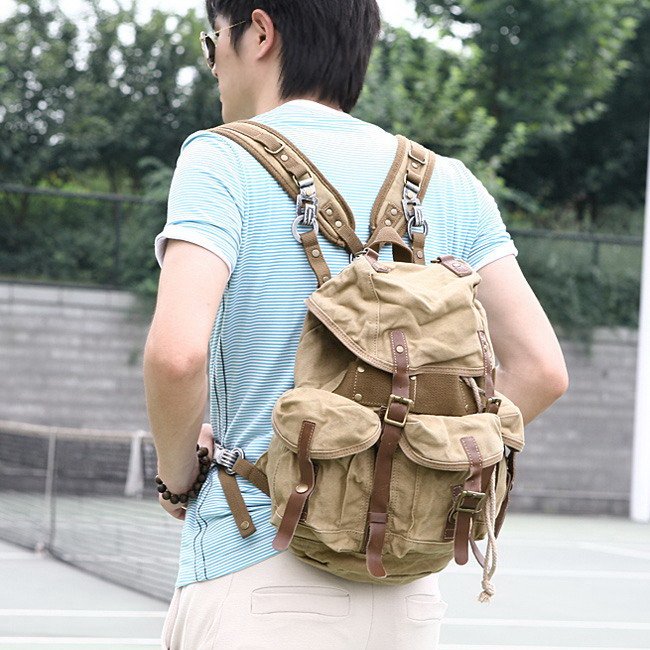 2296 Khaki Sports Backpack Bag, 100% Cotton Canvas Backpack, Leather Bag,fashion Handbag,backpack |