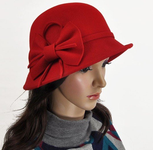 4 colors vintage 100% wool felt w bowknot women's top hat ladies' fitted cloche cap