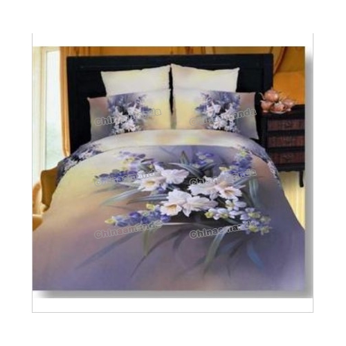 4 Pieces Pure Cotton Purple Flowers On Bedding Set |