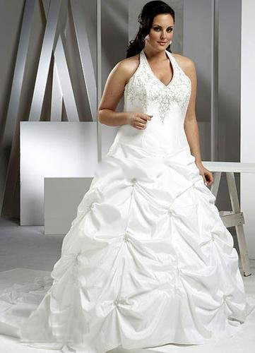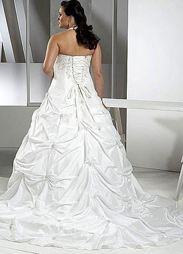 A-line Halter Embroidery Satin Plus Size Wedding Dress 6884 |