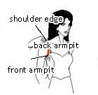 ![]() | 9 - Arm Circumference The girth around your arm. | ![]() | 10 - Armhole Stand, measure your arm root via shoulder edge, front armpit and back armpit. |