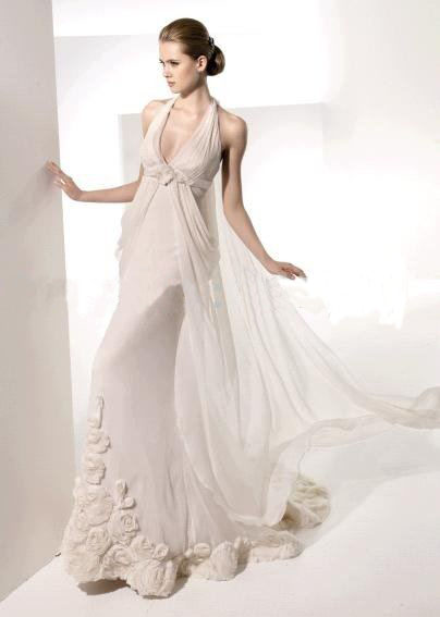 A-Line Split Front Halter V-neck Applique Sleeveless Satin / Organza Empire Wedding Dresses |