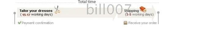 Total Shipping Time is based on the time it will take to tailor your dresses + the time taken for the finished dress to be shipped to you.