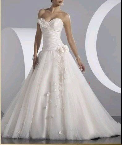 A Line Sweetheart Court Floor Length Handmade Flowers Organza Satin Wedding/evening Dress W001 |