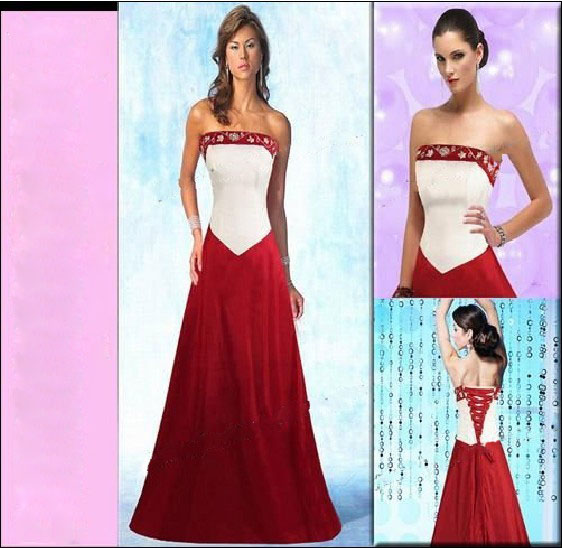 AH1129 Wedding dress bridal gown strapless floor length white red