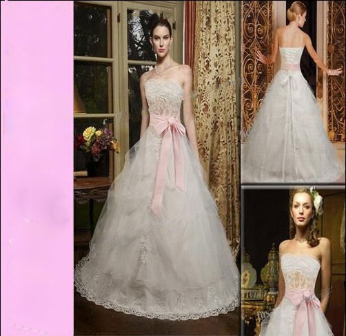 Use: Bride Place of Origin: Shanghai China (Mainland) Feature: Anti-Static,Anti-Wrinkle,B... Brand Name: Kely Arden Silhouette: A-Line Style: Modern Material: 100% Polyester Model Number: AH1183 Supply Type: OEM Service Decoration: Appliqued Hemline: the floor length Fabric Type: organza Technics: Appliqued Design: Strapless Color: White with pink or custom Size: Standard size or custom Closure: lace up Hemline: the Floor length Free accessory: None elegant wedding dress: desiner bridal gown lady dress: evening dress fashion dress: wedding supplies wedding decoration: wedding dress party dress: flower girls' dress