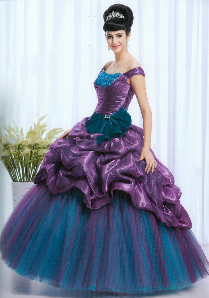 Ankle-length Purple & Blue With Bow Evening Dresses |