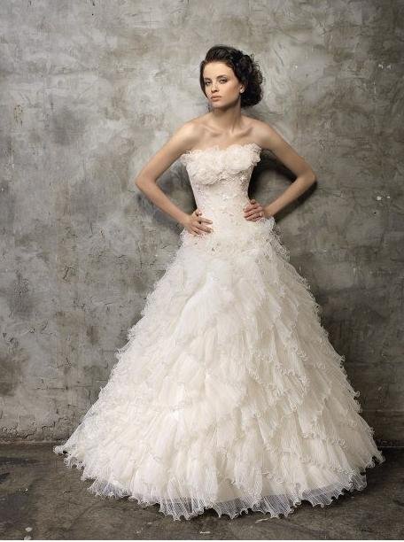 Ankle-length Strapless Sleeveless Scalloped-Edge Elegant Luxury Wedding Dresses |