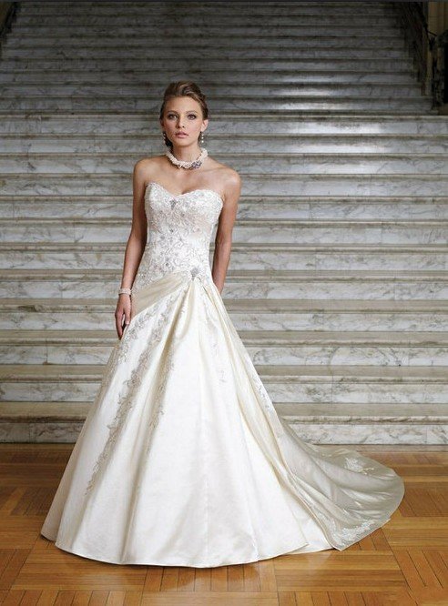 Appliqued Strapless Satin Bridal Wedding Dress 2011 Fashion Design Floor Length Wholesale Price+free Shipping Top Quality |