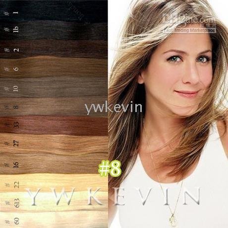 1.Why the hair extensions I get seem so thin, it`s not enough for me? Answer: This set (7pcs,70g) will give enough volume to an average customer. The longer your hair lenghth, the thinner your hair density. If you want your hair thicker,you can order the set of 80g ,90g or 100g,also could order more sets of 70g as your needs. Answer: Different monitor have different display.And every time,maybe the same color No. will have a little color differentia.Please ask a help from the hair dresser for the colors`code as the international color swatch says. | ||||||||||||||||||||||||||||||||||||||||||||