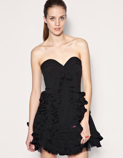 Beautiful Ruffle Unique Elegant Black Knee Length Prom Dress |