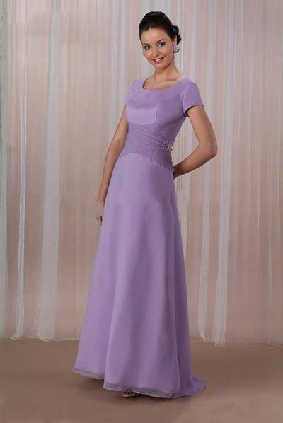 • Short Sleeve Blue Chiffon Empire Mother of the Bride Dresses