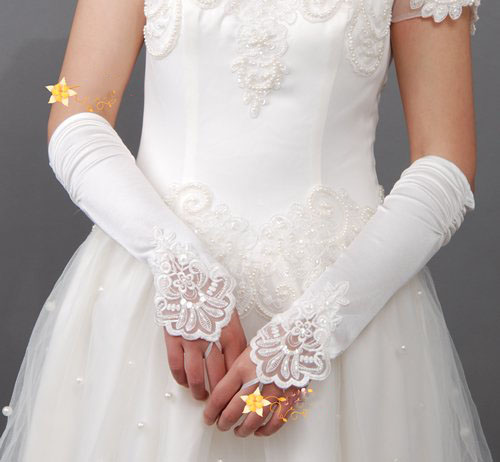 Product Type: Bridal Gloves Place of Origin: Shanghai China (Mainland) Brand Name: other Technics: Embroidered Bridal Gloves Style: Fingerless Model Number: other Material: satin color: White
