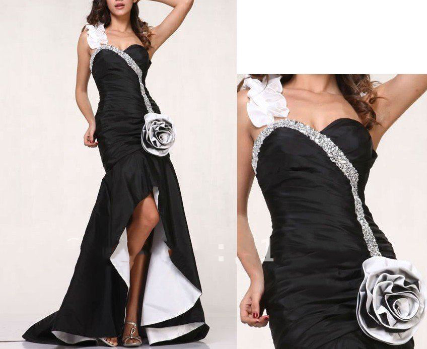 Black Besding Split Front Elegant One-Shoulder Evening Dress |