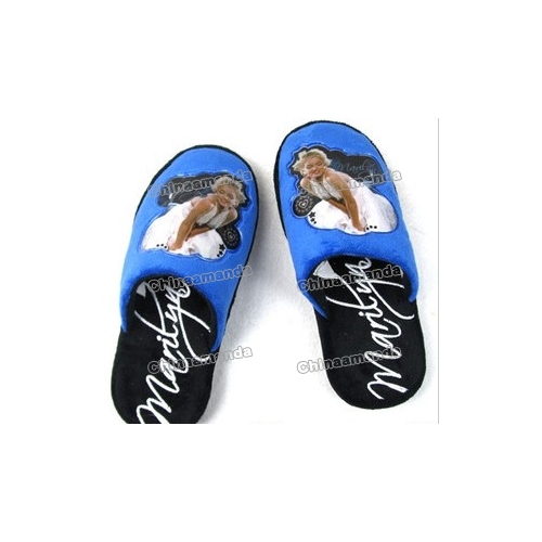 Black Blue Cartoon Images On Wool Anti Slip Winter Slippers |