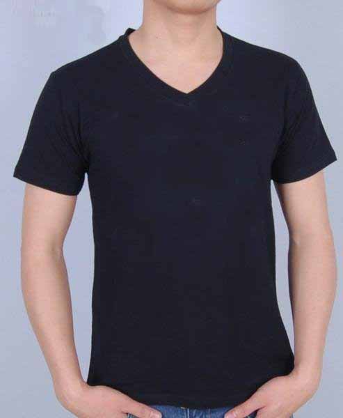 Black Color with Printing Logo V-Neck Short Sleeve Men's T-Shirts |