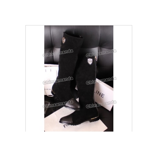 Black Knee Length Satin Real Leather With Zipper Women's Boots |