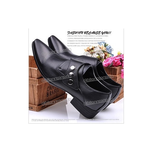 Black Pointed Flat Bottom Genuine Leather Men's Dress Shoes |