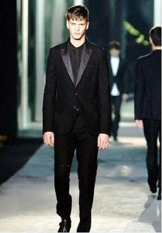 Black Polyester & Cotton Broad Shoulders Groom Tuxedos |