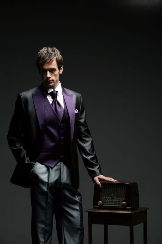 Black & Purple Long Sleeve With A Line On The Back Groom Cravats & Cummerbunds |