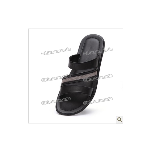Black Real Leather Fashion Super Soft Men's Flip Flops |