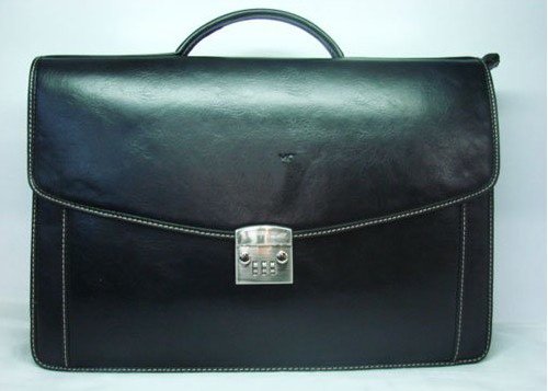 Black Rectangular Shape With Button Leather Briefcases |