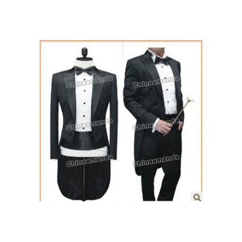 Black Single-breasted Peak Lapel Wool Groom Tuxedos |
