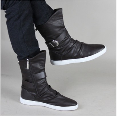 Black With Zipper Flat Bottom Men's Casual Boots |