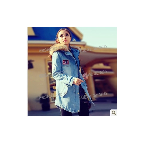 Blue Adjustable Wool Nylon Fashion Women's Jackets & Coats |