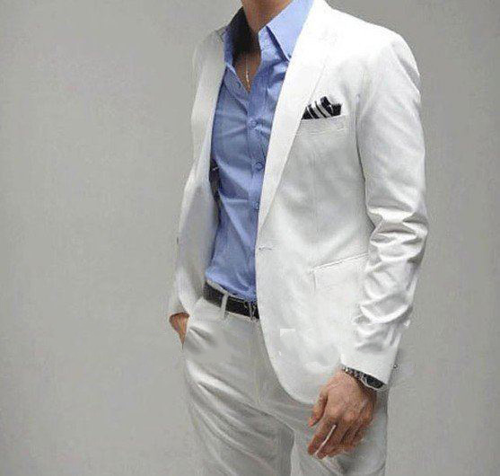 Broad Shoulders Polyester & Cotton Pure White Groom Suits |