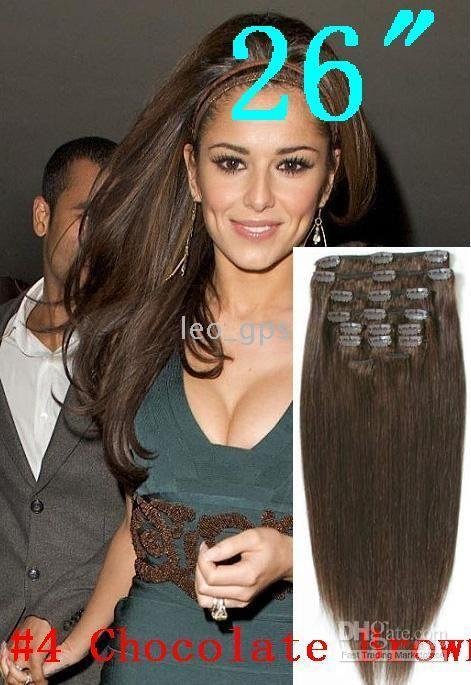 Brown 7pcs/set 70g 26"x32" CLIP IN On HAIR EXTENSIONS , REMY HUMAN HAIR EXTENSIONS #4 Chocolate |