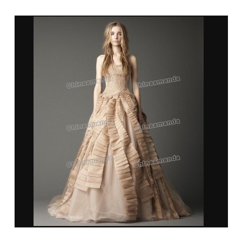 Brown Layered Backless Elegant Princess Wedding Dresses |