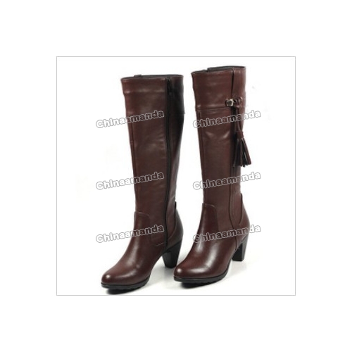 Brown Real Leather With Tassel Knee Length Women's Boots |