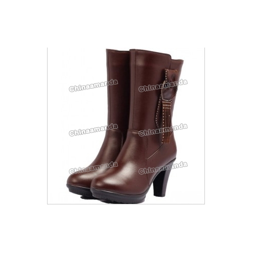 Brown With Platform Tassel On Leather Women's Boots |
