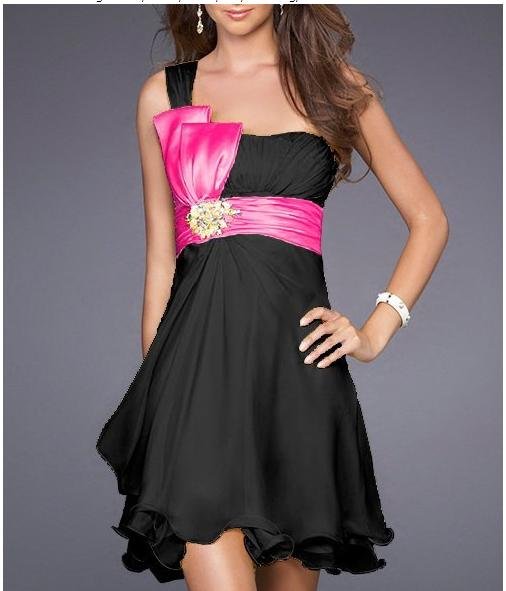 Chiffon Material Cocktail Style Unique Black Color Prom Dress |