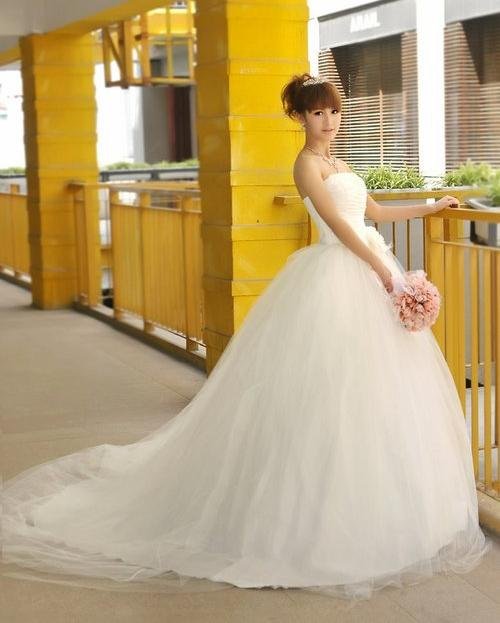 Chiffon Material Princess Strapless Floor Length Wedding Dress |