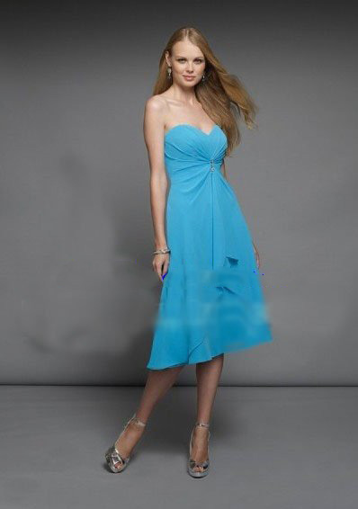 Place of Origin: Jiangsu China (Mainland) Feature: Anti-Static,Anti-Wrinkle,B... Brand Name: Bridesmaid dress Hemline: Tea-Length Fabric Type: Chiffon Silhouette: A-Line Style: Modern Model Number: evening dress Supply Type: OEM Service Item Type: Bridesmaid Dresses Neckline: Sweetheart Dresses Length: Tea-Length Decoration: fold Design Technics: Sweetheart Neckline Design: strapless Color: blue Material: chiffon color: blue size: any size Material: chiffon