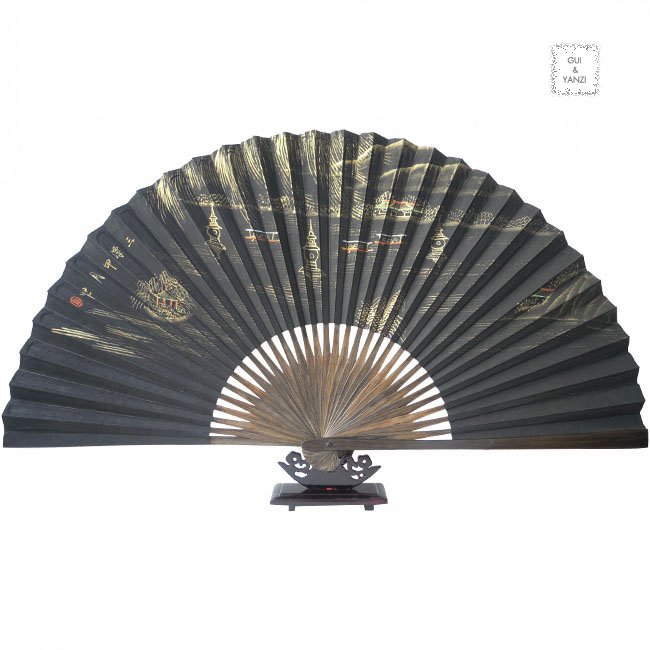 Material: Bamboo Place of Origin: Zhejiang China (Mainland) Brand Name: WANGXINGJI Style: Folk Art Regional Feature: China Product Type: Fan Use: Art & Collectible Model Number: 31008 Technique: hand made Theme: CHINESE TRADITIONAL CULTUR... NAME: Chinese traditional paper ... SIZE: 30CM(CLOSED) WORK QUANTITY: 502 WORK NAME: THREE POOLS MIRRORING THE ... TYPE: BLACK PAPER FAN