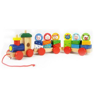 Colorful wooden baby toys cute happy sheep animal assembly train blocks